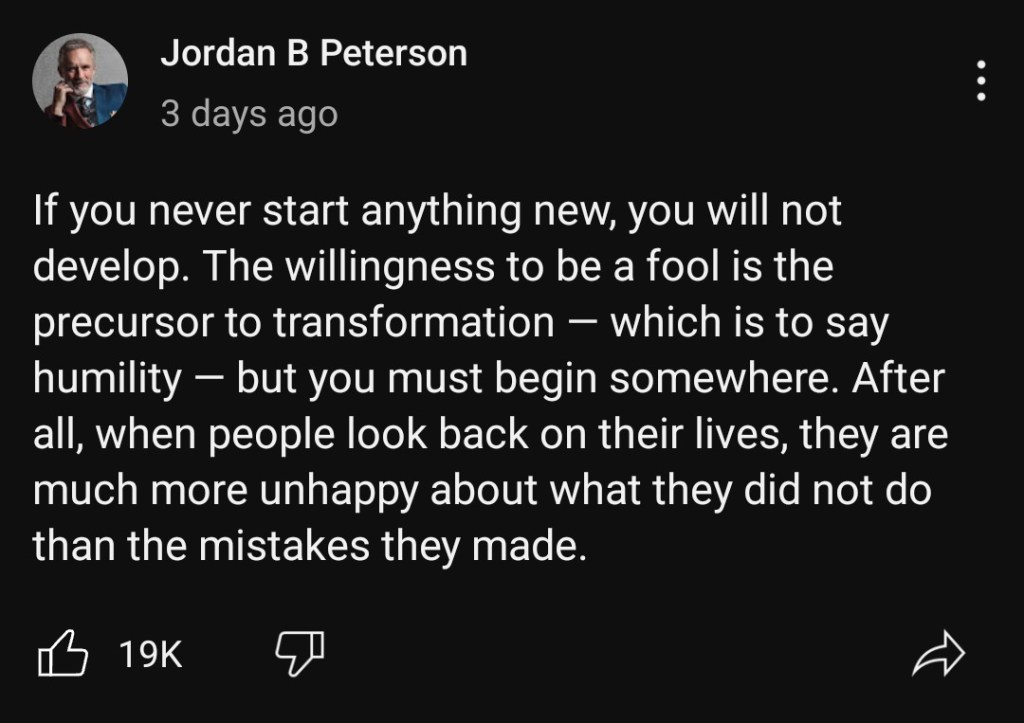 I woke up this morning doing my usual routine which includes making up my bed with a little light exercise and decided to check out Dr. Petersons page to see whats been going on on his side of the world lately. I should add that I also like starting my day on a positive note, so I’ll usually play some music and transition to something informative like a podcast or whatnot. And depending on my day if it’s over an hour I probably won’t sit through the whole thing but, I’ll eventually probably go back for a relisten. Anyways, I was pleaseantly surprised to see the progress of Jordan Petersons current project. For those who dont know he’s really going deep on the Christian Bible and translating and extracting lessons from it to a more modern audience. And you can get this service from literally anyone on the internet but if you follow his work and background I think it would be appreciated that much more. (My words not his) but he gives a lot of insight on the Dark Arts and the motives of neerdowells and the obstacles they tend to inflict on other persons, and without going too deep, his lectures are a decent resource if you want to know that kind of stuff . And apparently he got into a lot of Drama with the Psychology world 🤷♂️ I haven’t done too much research on it so I cant provide too much insight, but it seems he is a man on a mission and if it’s a noble one I wish him well in his endeavors. He has a new book “We Who Wrestle With God” and I would like to pick it up but personally I have a lot of other books on my list, but I look forward to the day when I can give it a read. And in conclusion, I’ll leave a few of his excerpts down below from his YouTube page and as I mentioned in a previous post, if you dont have a Thought leader, find one. (My words) Someone who lines up with your ideals that’s actually striving for something greater than themselves (that’s good) and I’m not saying to drink all the Kool-aid because everybody got some “stuff” goin’ on wether they know it or not. But, find somebody or people that’s figuring it out, wh’os actually honest, humble, and commited to truth . But other than that, stay cool, be kind, and be cautious.