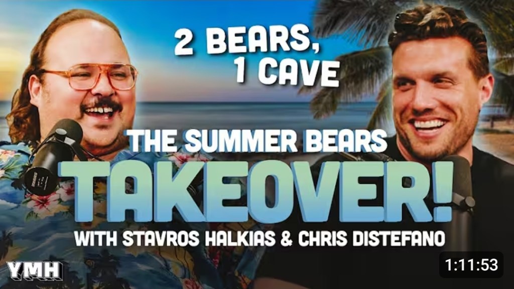 2 Bears 1 Cave (YMH Studios)- Bert Kreischer & Tom Segura podcast recently hosted by Stravos Halkias and Chris Distefano.